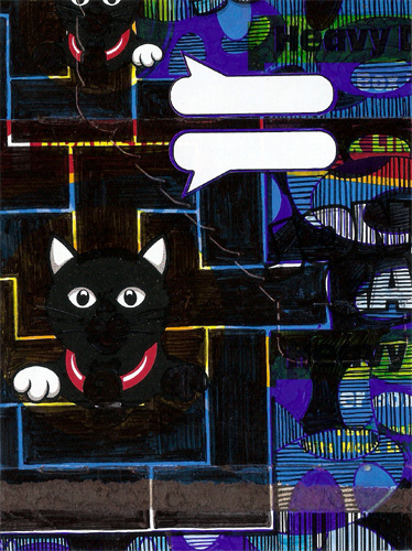 My name is Michael Orr, I am 39 years old. I am from and currently reside in Clarkston GA with my wife and son. I studied design at the Art Institute of Atlanta and The Creative Circus. During the day I pose as a research technician at Emory University. I’ve always made art. It’s a compulsion. It takes me away. It’s fun and makes me happy. I must do it. I started getting away from my sketchbook and making small pieces about 7 years ago. I started mailing things to friends, random people and places. My work is mixed media, collage, design, illustration, and hand carved rubber stamps over existing cardboard packaging waste, album covers, old game boxes, paper or canvas. I enjoy working on top of existing graphics and incorporating it into my own creation. Many works are a collaboration. Gradually I discovered there is a vast organized mail art network out there, composed of people from all over the world. I like the free exchange of art and ideas. The freedom of letting the works go. The enthusiastic collaboration among the network. The visual poets of this network have directly inspired and influenced my work. Since discovering this network I’ve been in a handful of little group shows around the world and published in a few zines, and a couple of book projects. I’ve shown my work locally at a few events and small venues. Most recently I’ve curated a mail art show at Atlanta’s Eyedrum Art and Music Gallery.