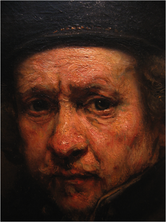 Abstraction with traditional painting applications is one of the easiest ways to detect bad abstraction. Bad abstraction is filled with retouching and modeling. This retouching and modeling is no different than any portraiture from the Byzantine to present. Portraiture employs a technique of using the most brushstrokes on an object to make it the most important, often times the face. Rembrandt and many artists often employ these techniques, allowing the background to be out of focus while the face is precious. There is no place for this type of application in pure abstraction. In the basic beginnings, when attempting abstraction, this portraiture tradition must be identified and then broken to become free enough to achieve pure abstraction. Kandinsky’s overworked blended areas in his Composition VII 1913 are no more intuitive than a color by number setup–put a line/shape, then fill it in.