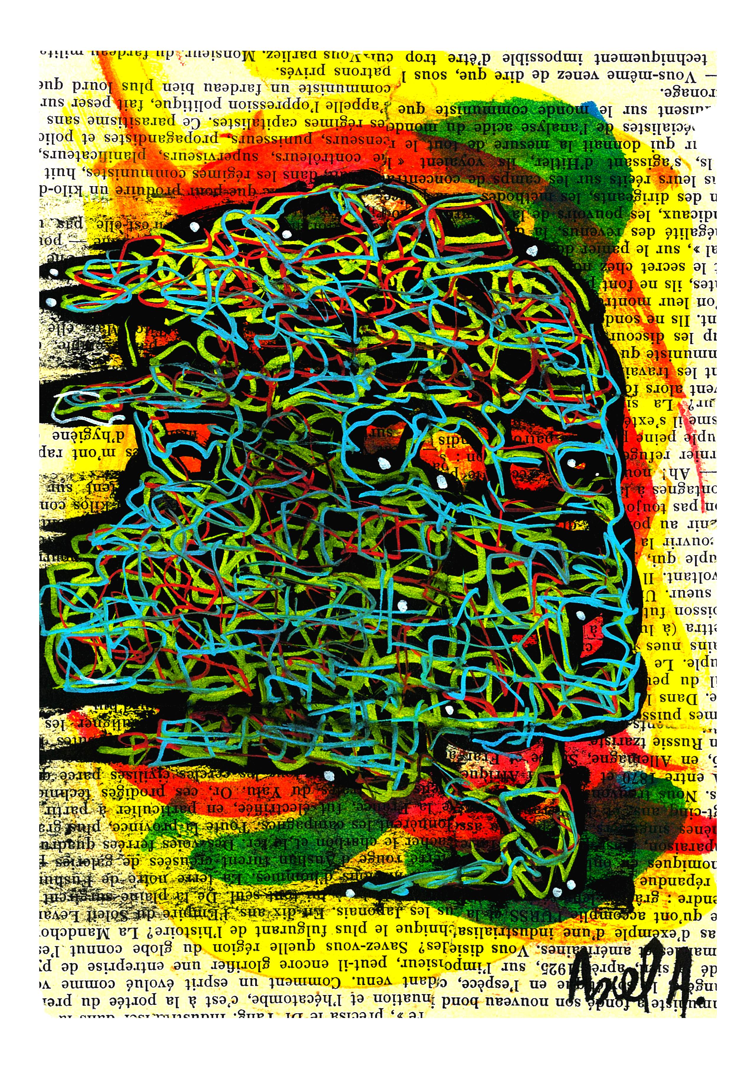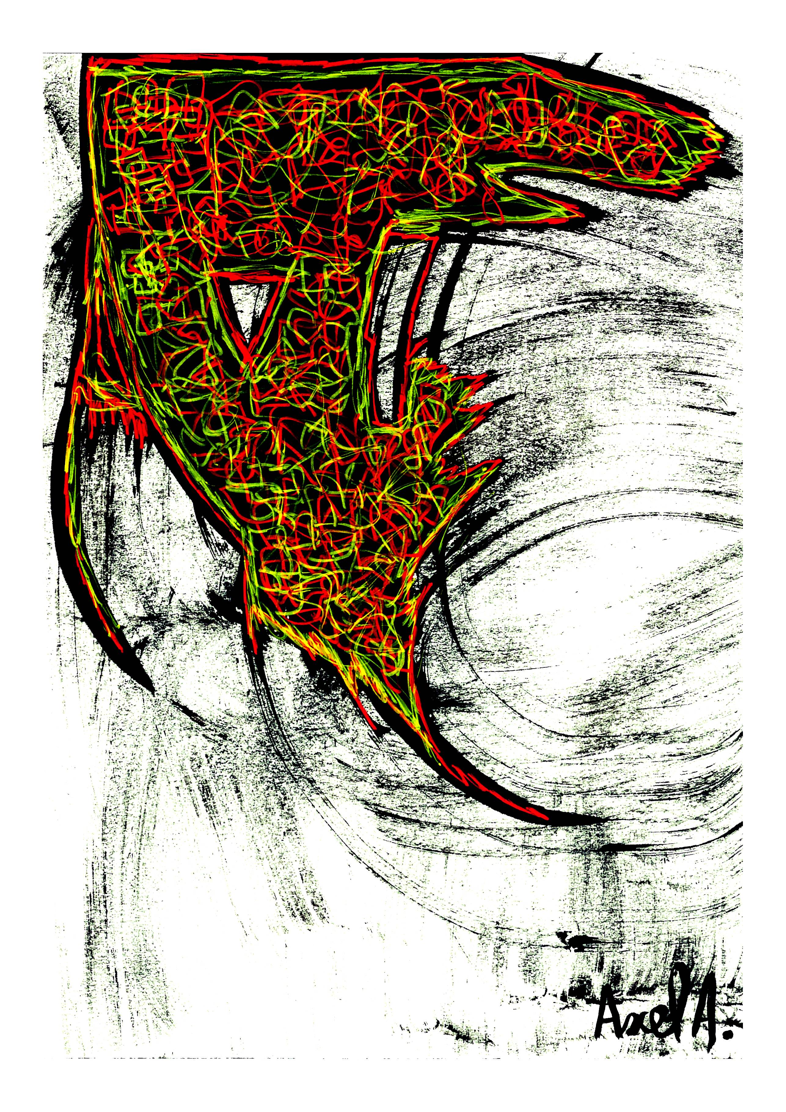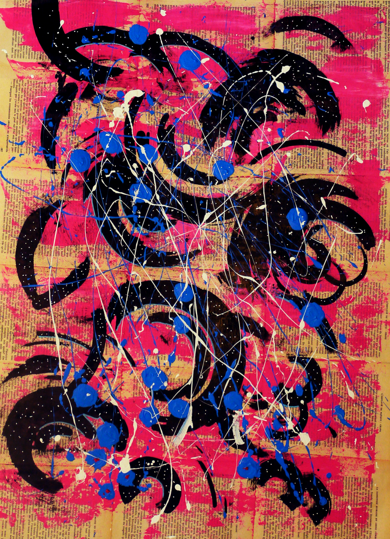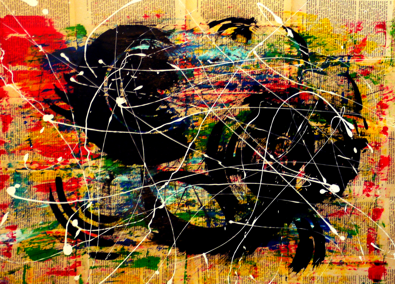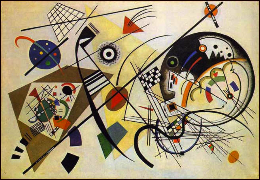 In this essay the term “standardization” refers to the general marks, shapes, and colors one makes to feel safe when one is uncomfortable. It refers to a conscious, contrived placement of elements to be discussed rationally. Pure abstraction is a scary proposition that requires an existential immediacy that should not be rationalized. The standardized process can be seen in Kandinsky’s carefully constructed arrangements. Geometric shapes are classic signs of wanting to control the spiritual. Kandinsky covers his desire to break these rules in order to access this spirituality in his book Concerning the Spiritual in Art.