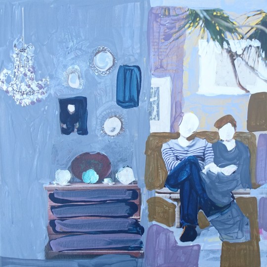 As far as what I do, what you see on canvas, I’m calling it art to simplify the means of my expression. These pieces were birthed from the passions of life, living freely, being myself, and loving who I truly am. I use acrylic on canvas to express myself, and I continue to grow with each new piece.