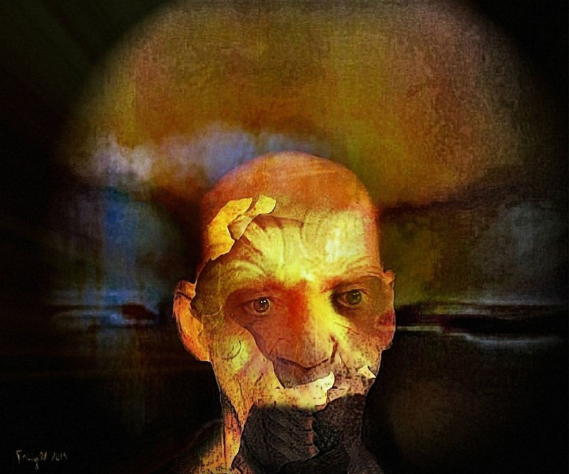 Feingold worked for 15 years as a visual designer and 15 years as a school social worker, when he had to take early retirement, due to advancing cognitive impairments stemming from a closed head injury from a hit-and-run accident in his teens. The closed head injury was the genesis of Feingold’s temporal lobe epilepsy and bipolar disorder. He resides in rural Michigan in a simple, one room dwelling, complete with a wood burning stove and a pond in the back yard. Feingold states that his home provides a perfect environment in which to produce his artwork as well as a harmonious balance and stability in light of the unpredictable challenges associated with his diagnoses of bipolar and seizure disorders.