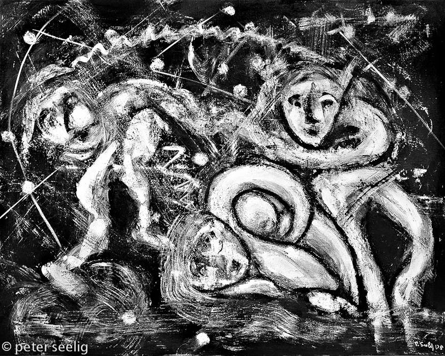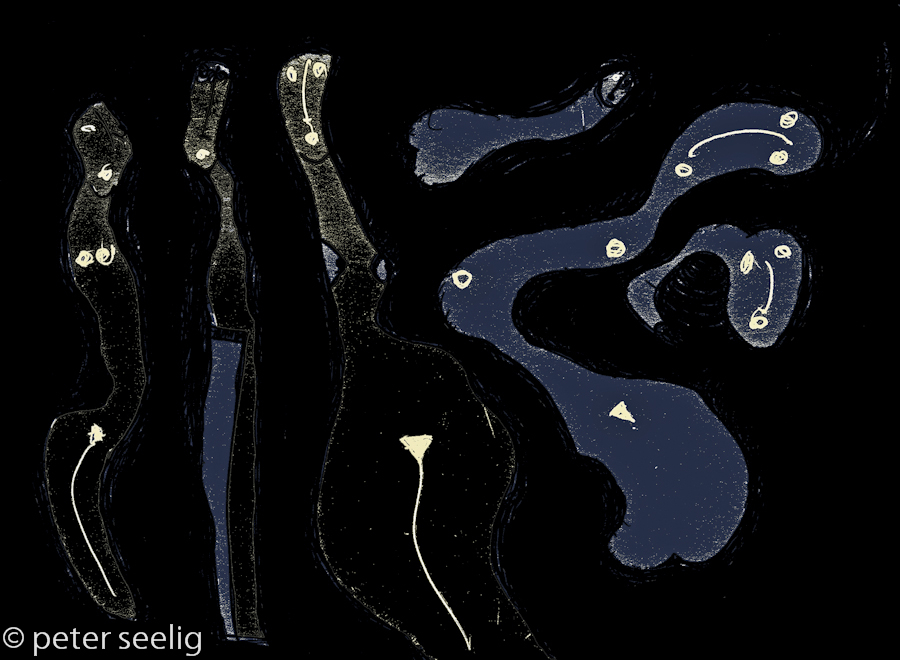 visible is a black eternity, and real figures of Lillith or the flowers for Alice. Strange spirals or the form of an angel flying through the dark room.” (Prof.Ulrich Gansert)