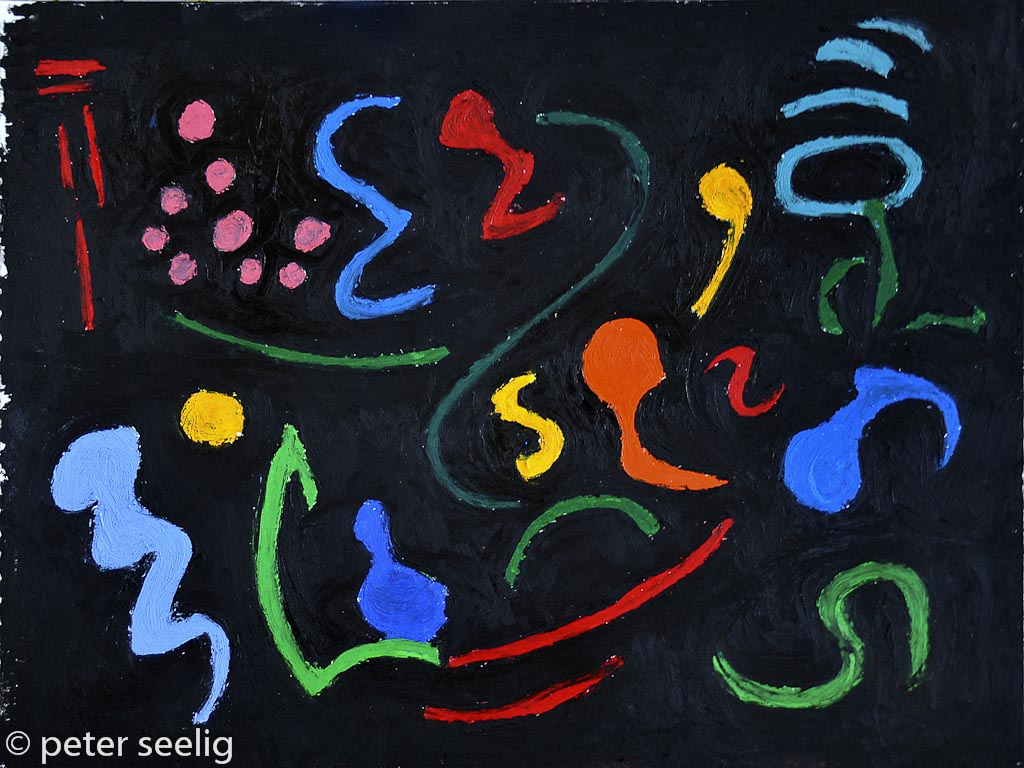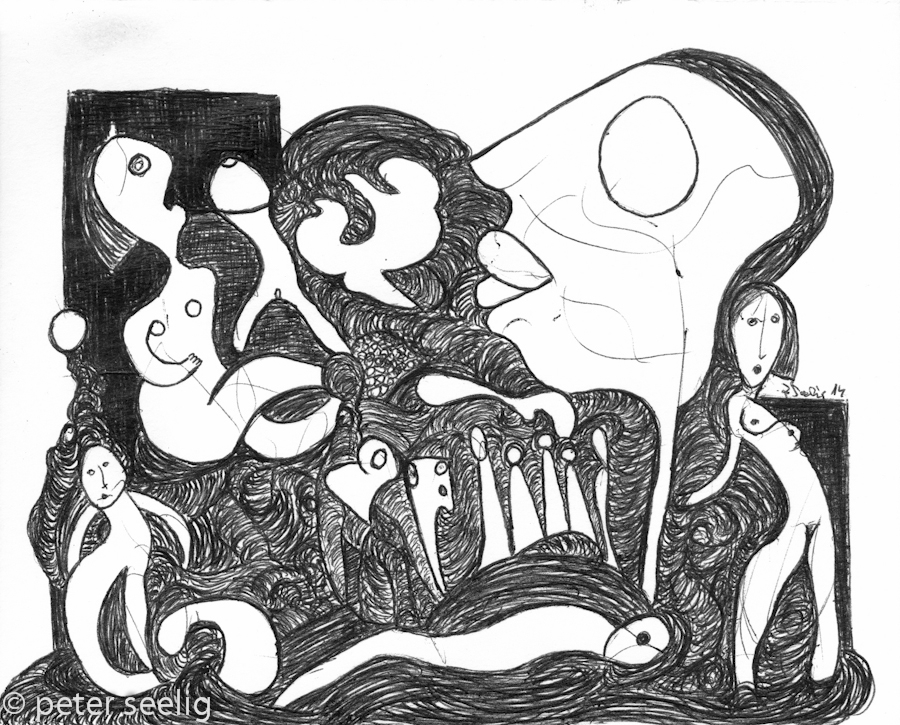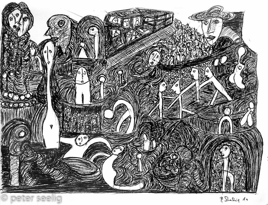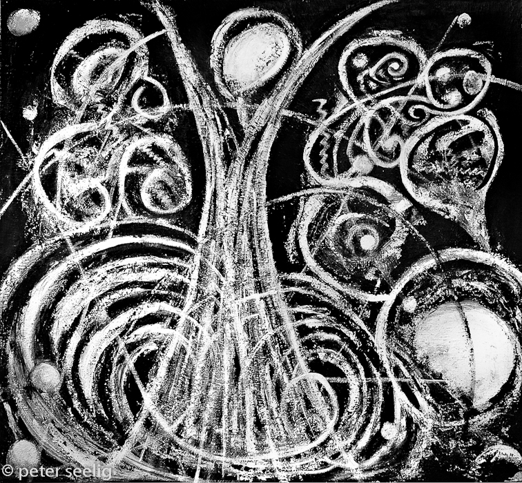 swinging lines constitutes the theme of Peter Seelig’s work. He circuits his subject in drawings and