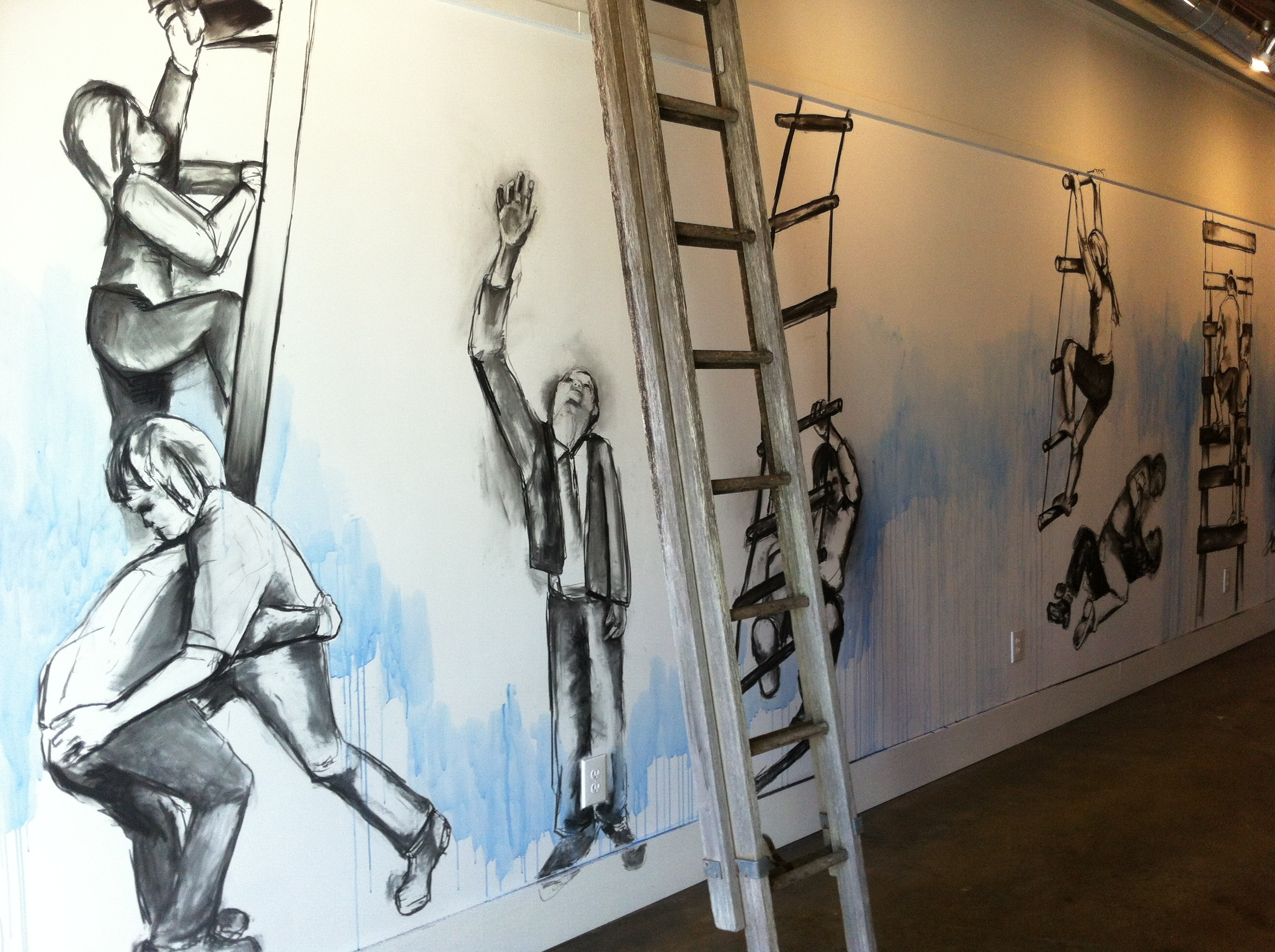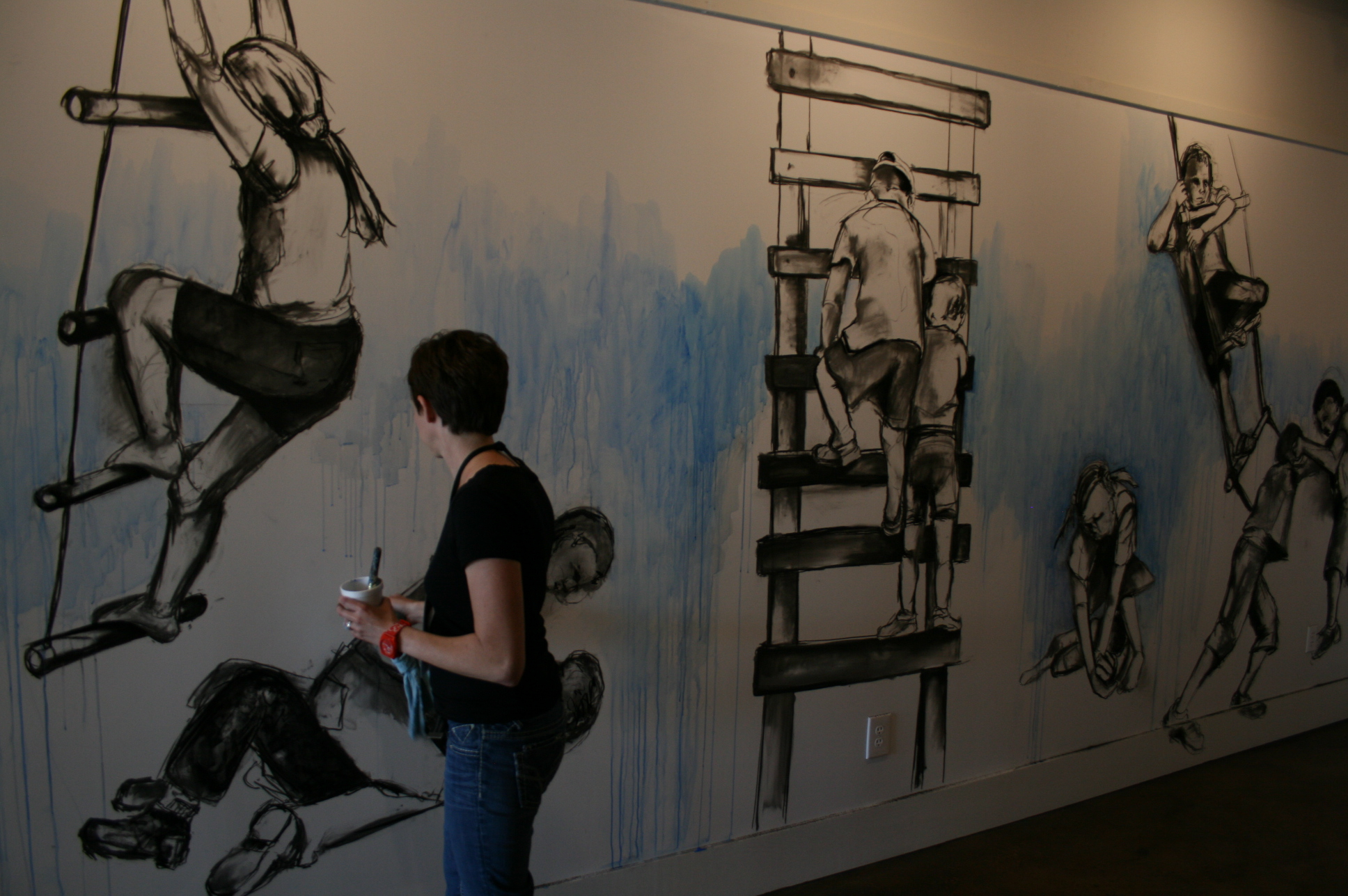 Though I love drawing, I also love the possibilities of space and involving the viewer.  I often add three-dimensional objects to challenge the space and break the plane of the wall. I love the performative nature of drawing large scale in public spaces, which allows the viewer to experience the evolution of the drawing. My goal is not to create permanent art works, but to create experiences.