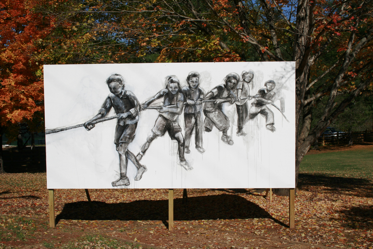 Tug of War, Mayors Park, Young Harris, GA (outdoor drawing, children playing tug of war)