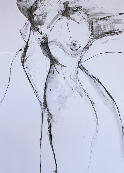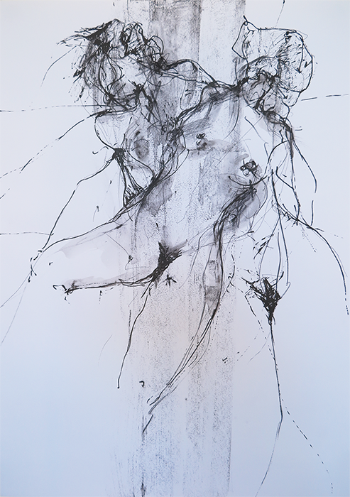 Celebrating the gentle contours of the female body with fine, sensual, fluid lines that reference an unrestrained dance, Juan’s drawings provide a seductive entry point to an intense oeuvre, introducing enduring themes of sensuality, corporeality and temporality.