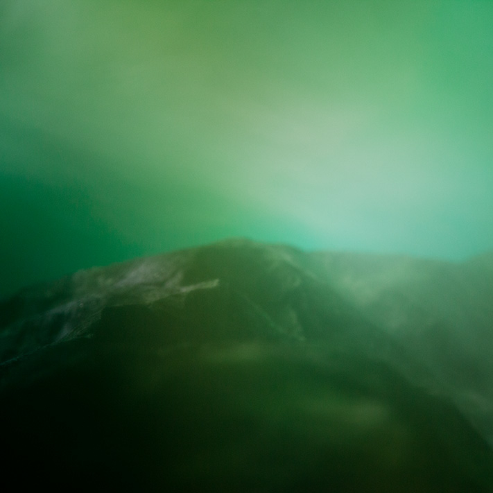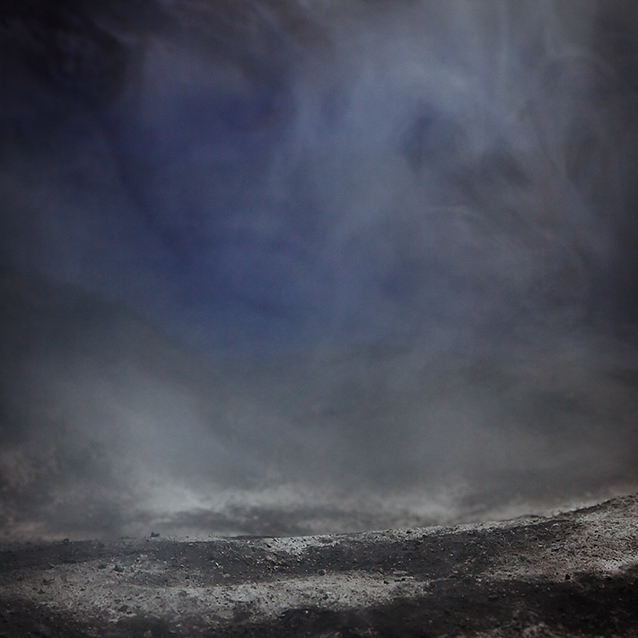 The scenes are sculptures created in my studio out of wire mesh, plaster, paper, and other elements. I use lighting gels, fog machines, and various kinds of gobos both found and made to alter the light, as well as overhead projectors and printed transparency material to create different effects. I am constantly moving the camera, moving scene elements around in relation to one another, and changing the light. It has been said that photography is the relation between light, the subject, and the camera. I try to keep all three in flux at all times, because that is where the unpredictable magic happens. I perform only minimal digital post-processing on these—there is no Photoshop involved in creating the visual effects. When I first began the series I was shooting on medium format film and doing my own printing, but my darkroom access has changed since then, and I now shoot digitally and send files out for printing.